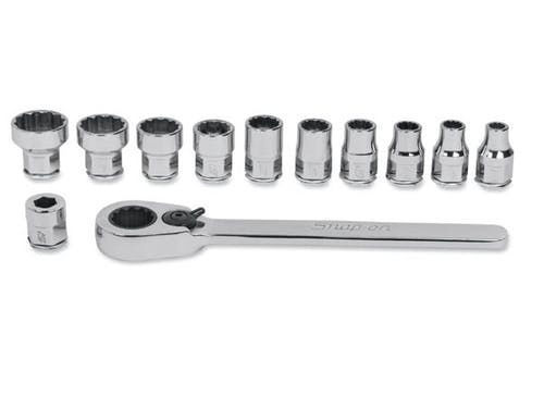 112RTA - 1/4" Drive Flank Drive® 12Pt Low Profile Ratchet and Socket Set 3/16-9/16", 12Pc