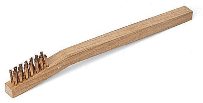 Bronze non-abrasive brush cleans carbon from injector tips