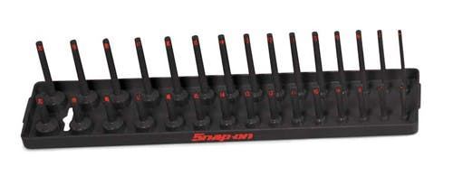 Each rack holds a wide size range of common shallow and impact Snap-on® sockets