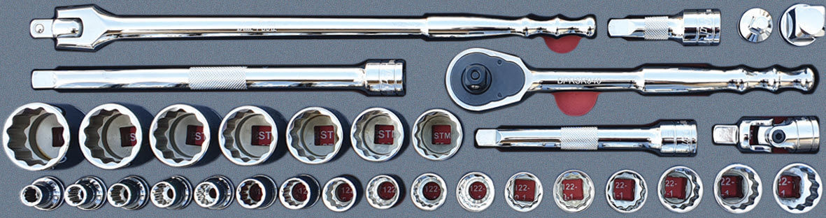 MOD.351BH45S - 1/2" General Service Set with 12Pt Sockets; 32Pc - Metric