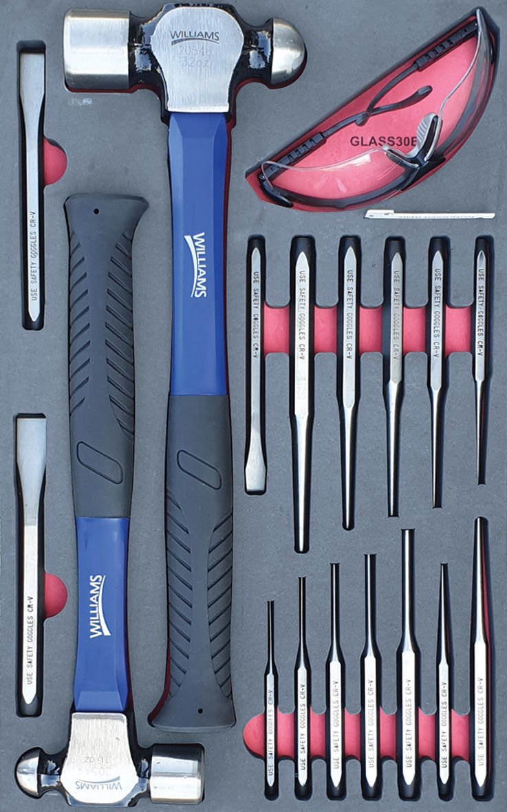 MOD.379BH42D - Hammer, Punches and Chisels Set; 19Pc