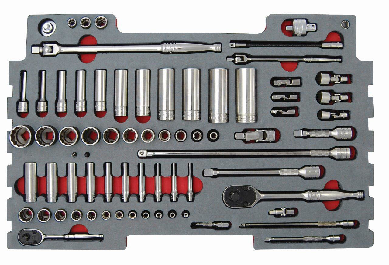 MOD.391SR43F - 1/4" and 3/8" Sockets and Accessories Set; 71Pc (for KMC box) - Aviation / Imperial