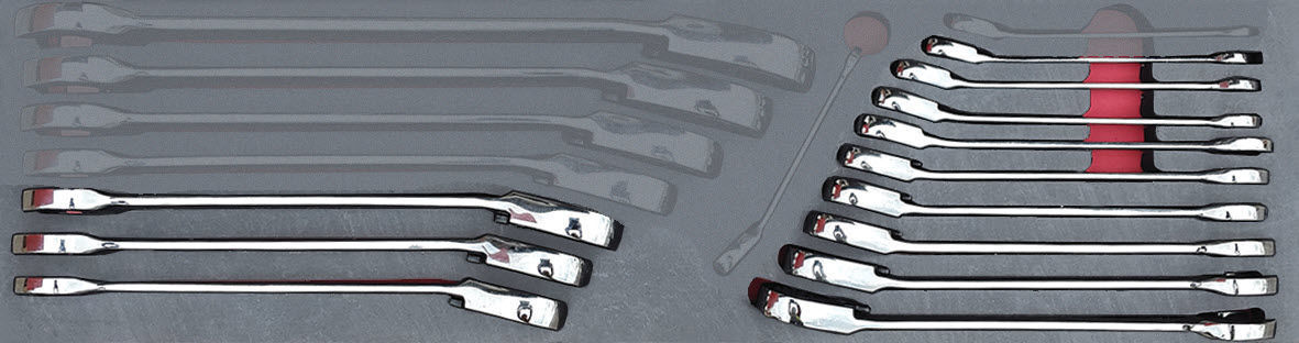 MOD.728SH45S12SP - 15° Offset Spline Ratcheting Combination Spanner Set 8-19mm; 12Pc