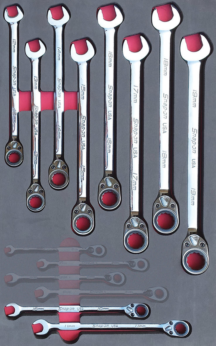 MOD.757SH42D10 - Flank Drive Plus Reversible Ratcheting Combination Spanner Set 10-19mm; 10Pc (SOXRRM710 Set)