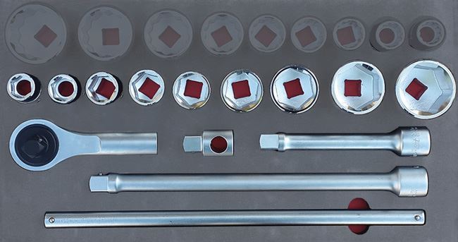 - 9 x Shallow 6Pt Sockets 22, 24, 27, 30, 32, 36, 41, 46 & 50mm