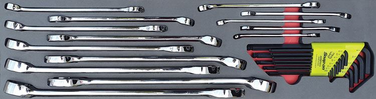 Set contains: 14x Polished Finish Combination Spanners 1/4-1" (incl Snap-on OEX11B - 11/32"); 13pc Ball Hex Allen Key Set .05-3/8"