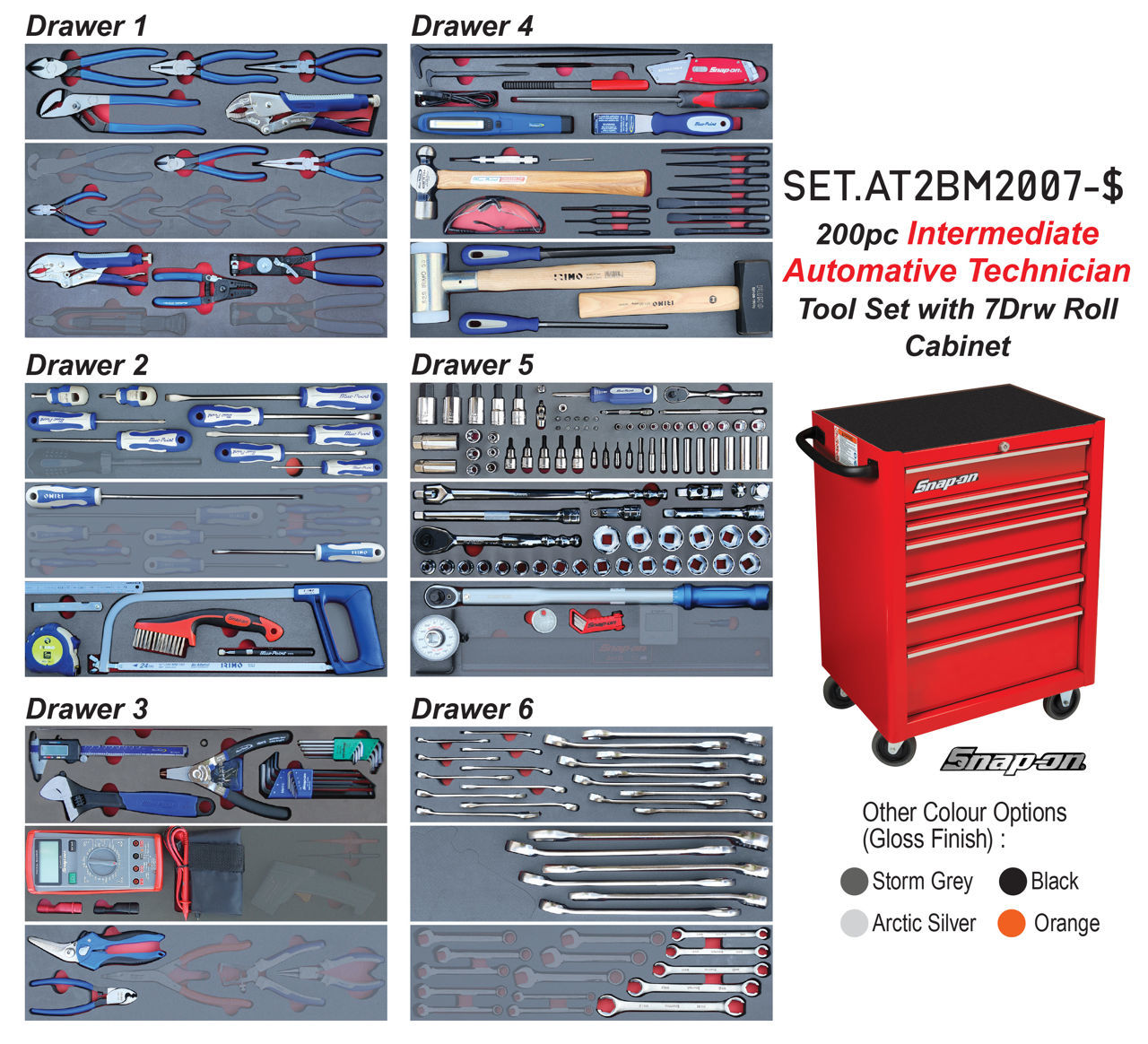 SET.AT2BM2007-$ - 200Pc Intermediate Auto Technician Tool Set in Foam Inserts with 7Drw Standard Roll Cab
