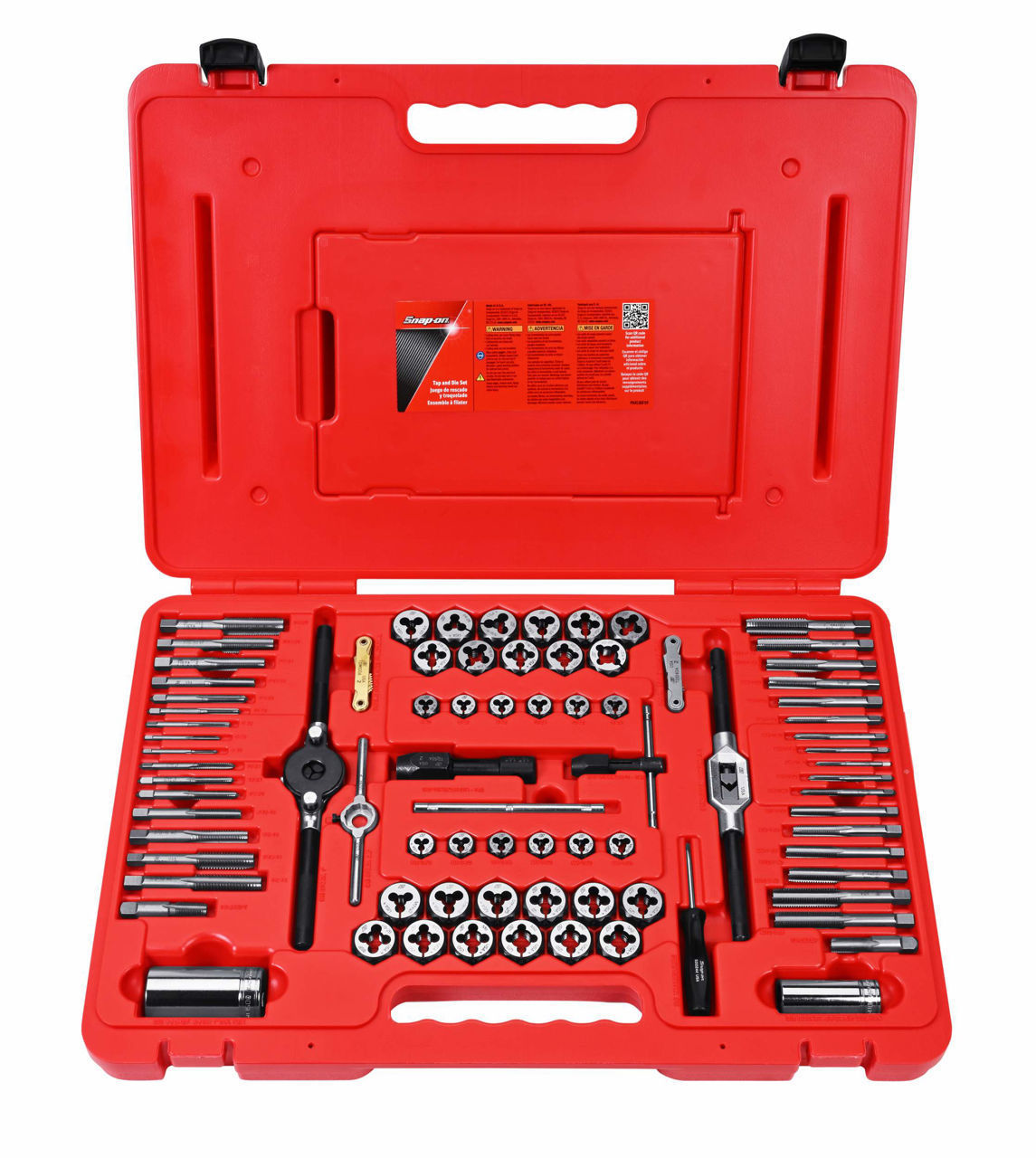 Set includes a wide range of tap wrenches, die stocks, thread gauges and exclusive die sockets