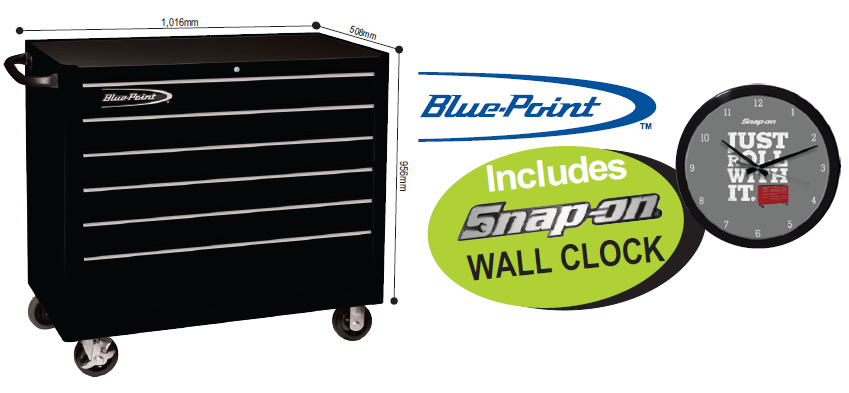 XXNOV140 6 Drawer WIDE Textured Black Roll Cabinet includes Snap-on Wall Clock